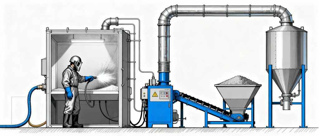 We design and supply complete blast room systems for industrial surface preparation — from enclosure, abrasive recovery & recycling, dust extraction to operator safety solutions. Suitable for shipyards, foundries, fabricators, refineries & heavy engineering.